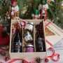 Assembled with care and expertly curated, this wooden crate holds a delightful pairing of drinks and gourmet treats, tailored to convey warm wishes to friends and enhance cherished family moments.
